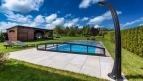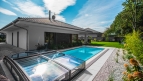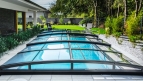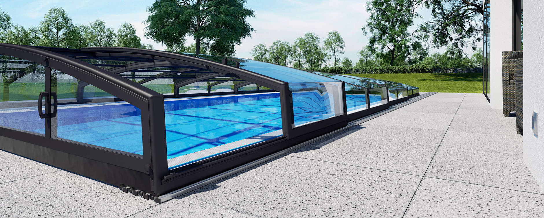 Discrétion et finesse, telle est la promesse CASABLANCA INFINITY. Un abri de piscine bas qui, à première vue, passe inaperçu dans le jardin. Le carénage clair cassé, le look futuriste en carbone et les rails Air bas en sont la preuve.