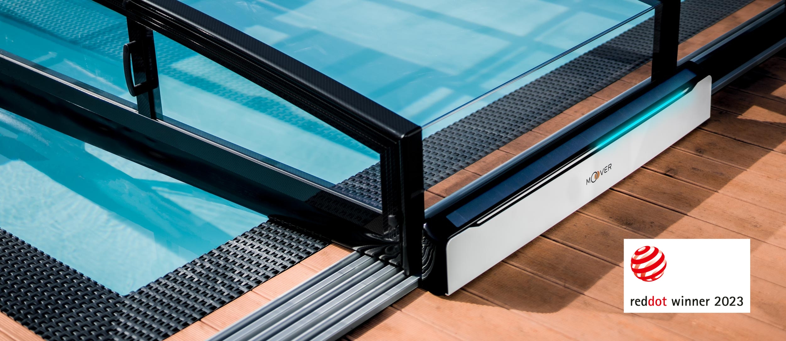 Le MOOVER a remporté le Red Dot Award dans la catégorie design de produit, ce qui témoigne de l'excellence de sa conception et de sa fonctionnalité. Le jury a souligné la manière dont le système coulissant électrique élimine la charge physique du déplacement des abris de piscine et permet à l'utilisateur d'effectuer cette tâche facilement et confortablement.