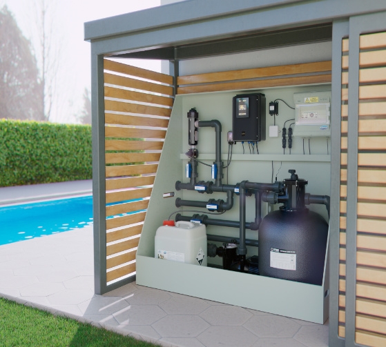 Le confort est le plus important. Vous avez toujours la technologie de piscine à portée de main. Vous ne vous sentez pas à l'aise pour mettre la technologie de la piscine dans le puits ? C'est pourquoi nous avons conçu des parois techniques pour vous. Vous pouvez les placer dans la cave, le garage ou l'abri de jardin.